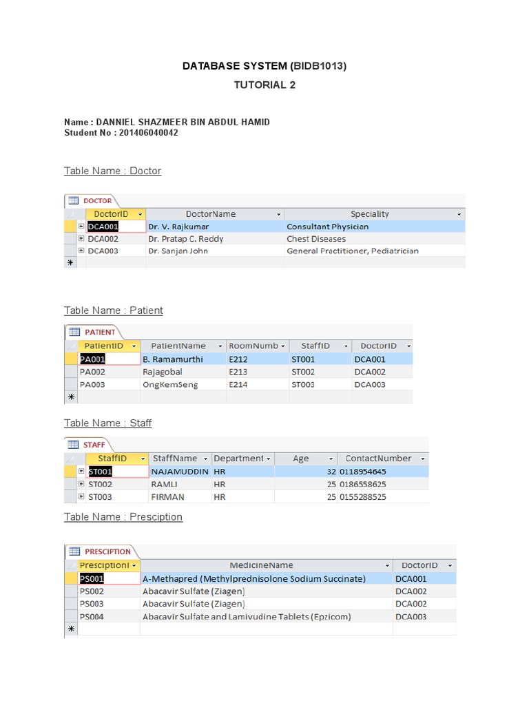 Table Name: Doctor: Database System ( | PDF | Science & Mathematics