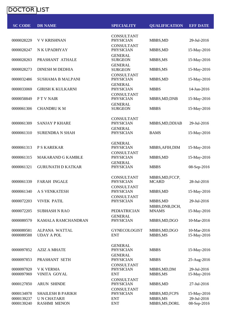 SAMPLE - Doctor - Database - XLSX - Google Sheets | PDF