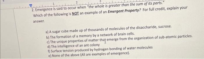 Solved 2. Emergence is said to occur when "the whole is | Chegg.com