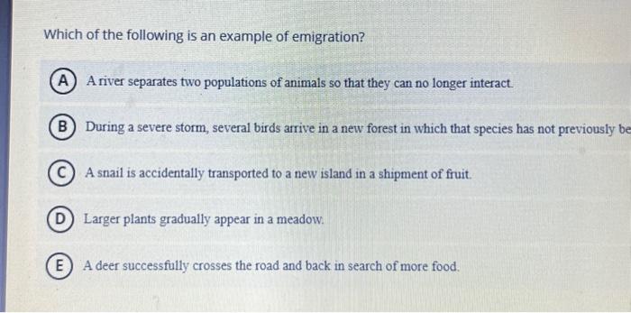 Solved Which of the following is an example of emigration? A | Chegg.com