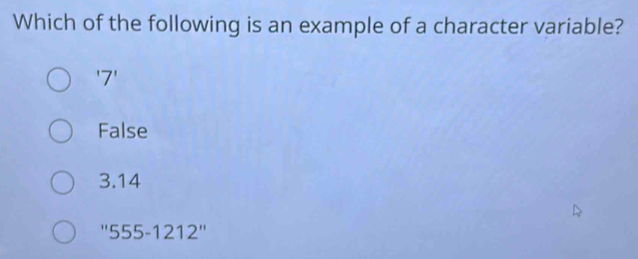 Solved: Which of the following is an example of a character variable ...