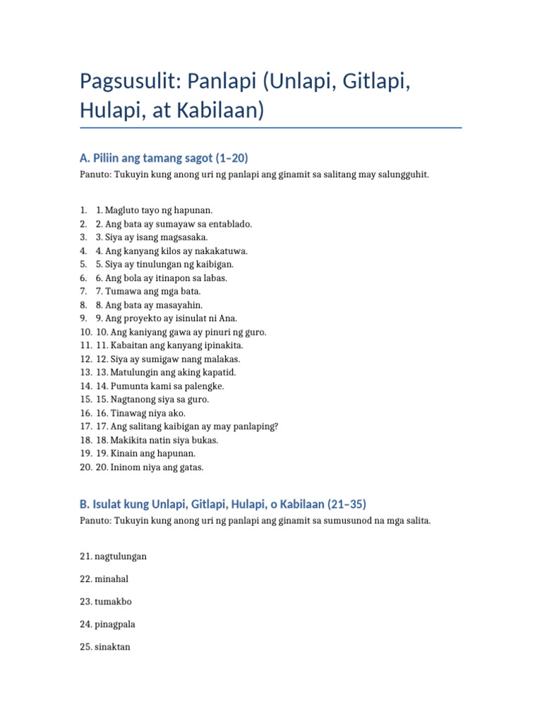 Pagsusulit Unlapi Gitlapi Hulapi Kabilaan | PDF