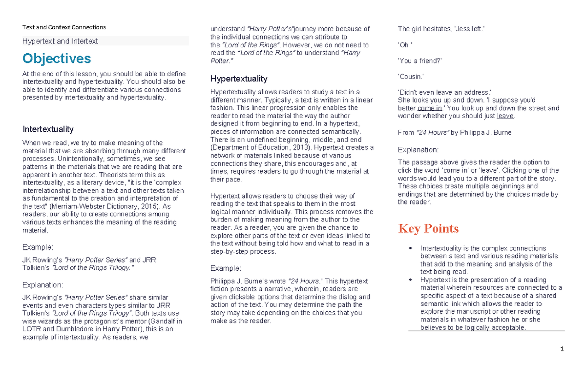 L1.1: Hypertextuality and Intertextuality in Writing Contexts - Studocu