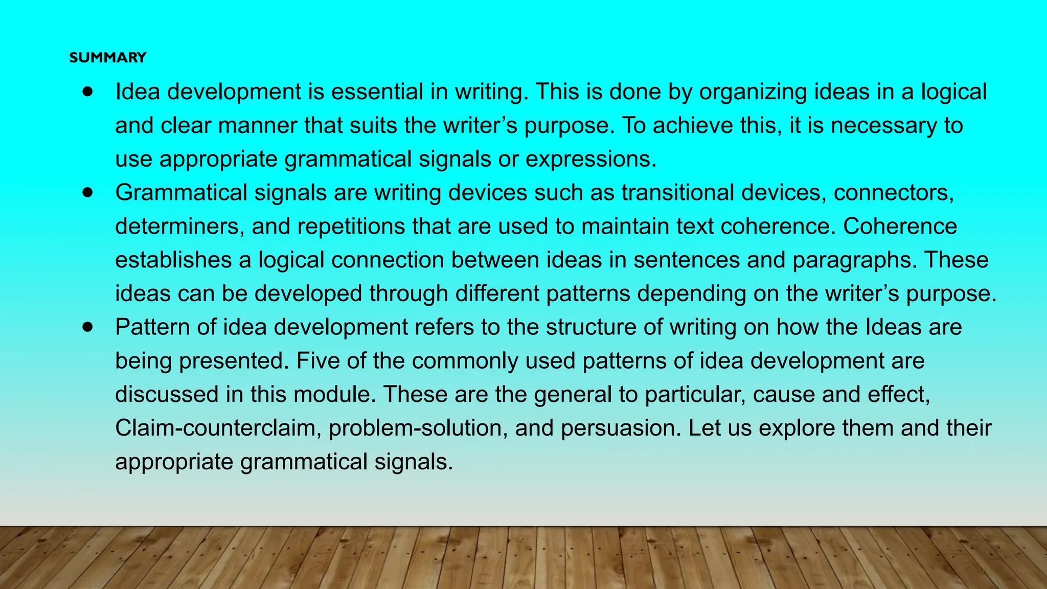 PATTERN OF IDEA DEVELOPMENT in English 8 Lesson .pptx