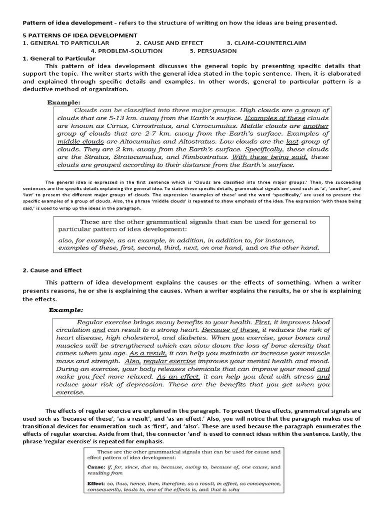 English notes for exam - – English PATTERNS OF IDEA DEVELOPMENT A ...