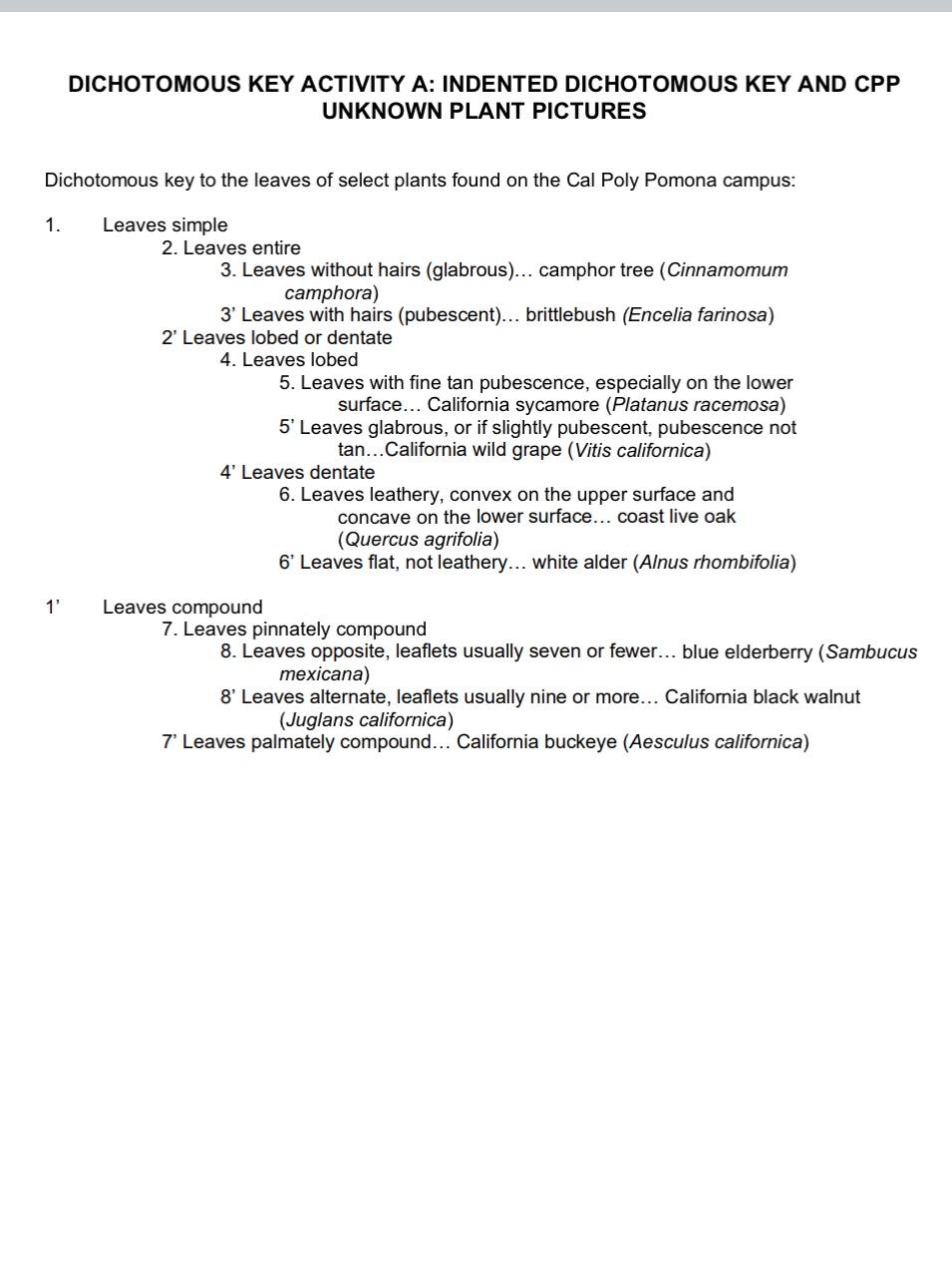 Dichotomous Key California Plants at Claire Brownless blog