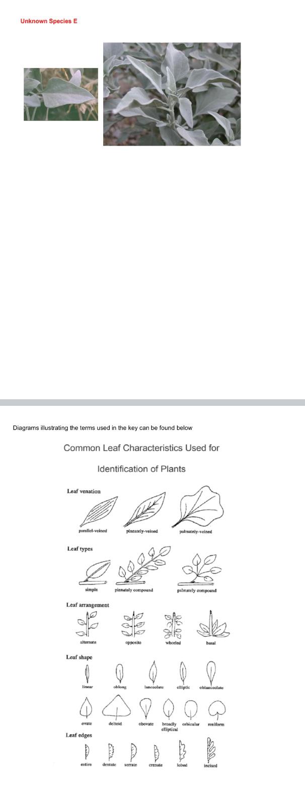Plant Dichotomous Key - Labelled diagram