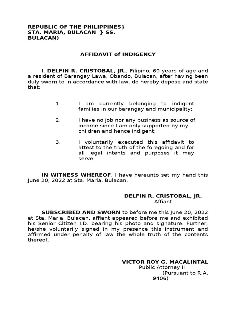 Certificate Of Indigency Sample Philippines - Form example download