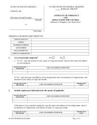 Affidavit Of Indigency And Application For Counsel Form printable pdf ...