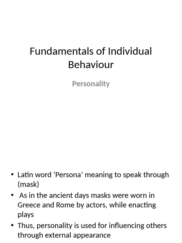 Unit Three Fundamentals of Individual Behaviour Personality | PDF ...