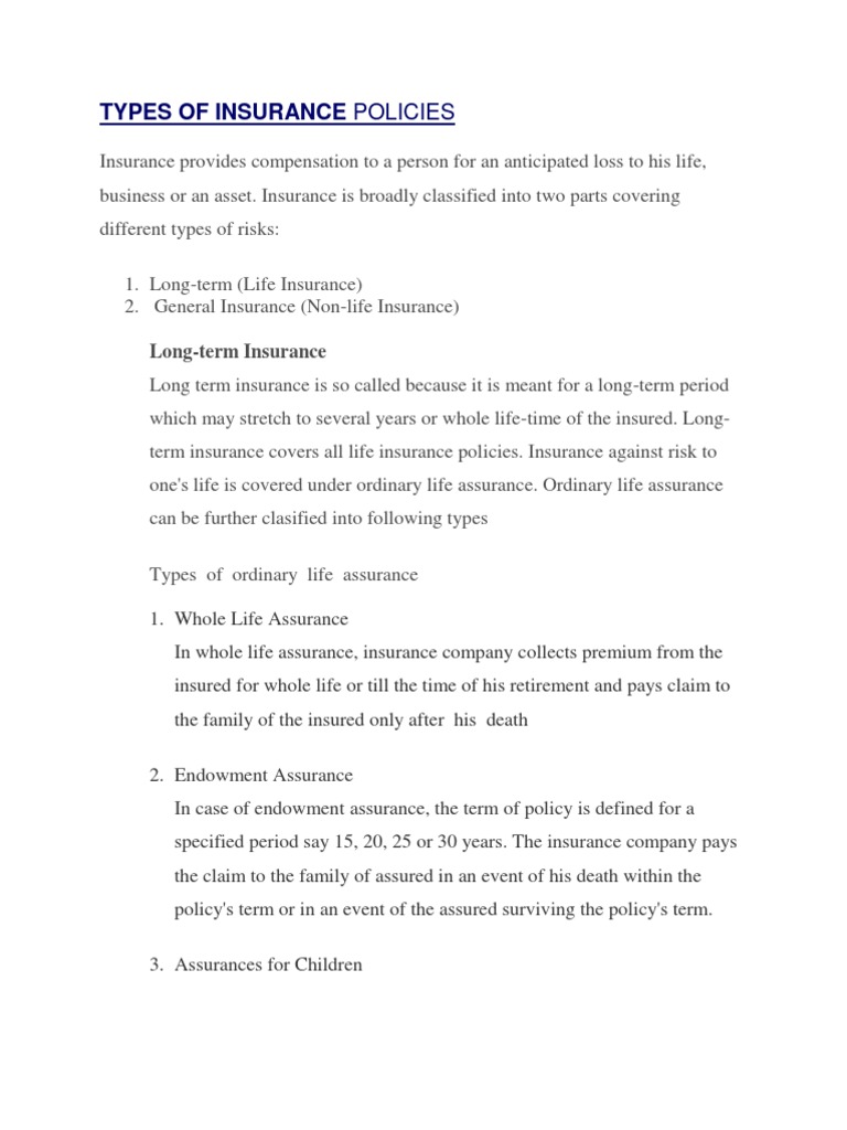 Types of Insurance Policies | PDF | Life Insurance | Life Annuity