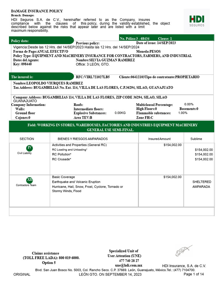 Insurance Policy Sample PDF | PDF