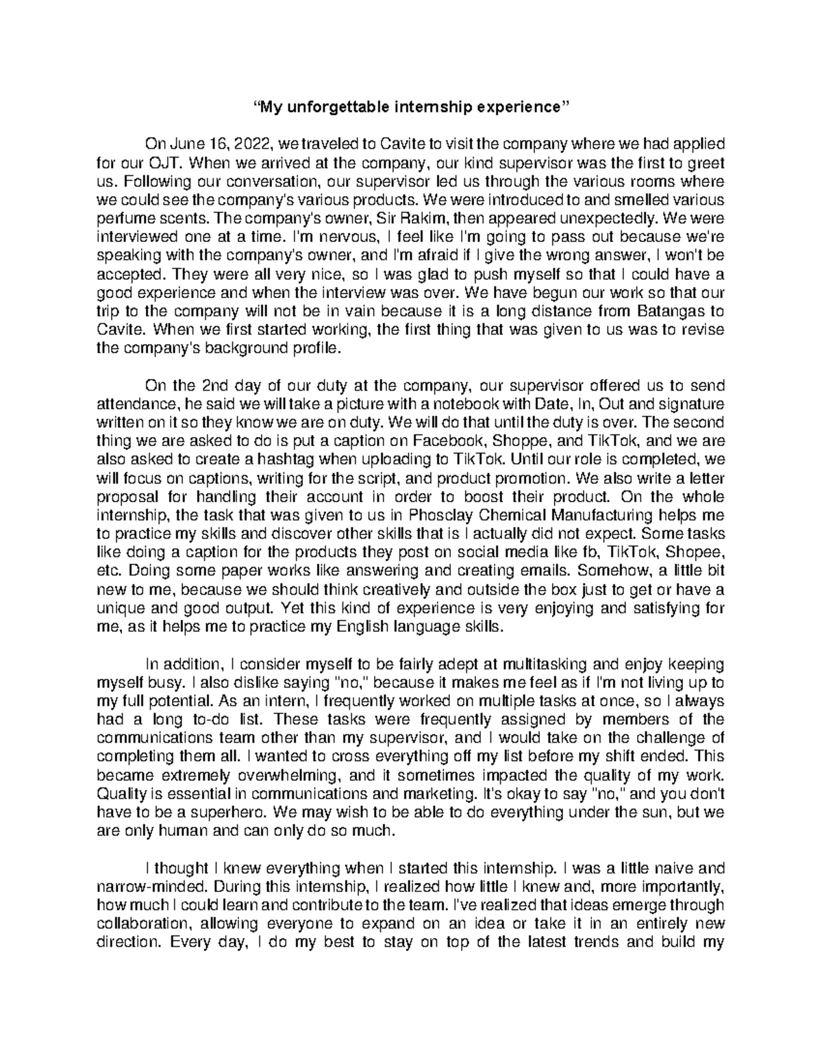 What I Learned From My Internship Experience Essay | PDF | Internship ...