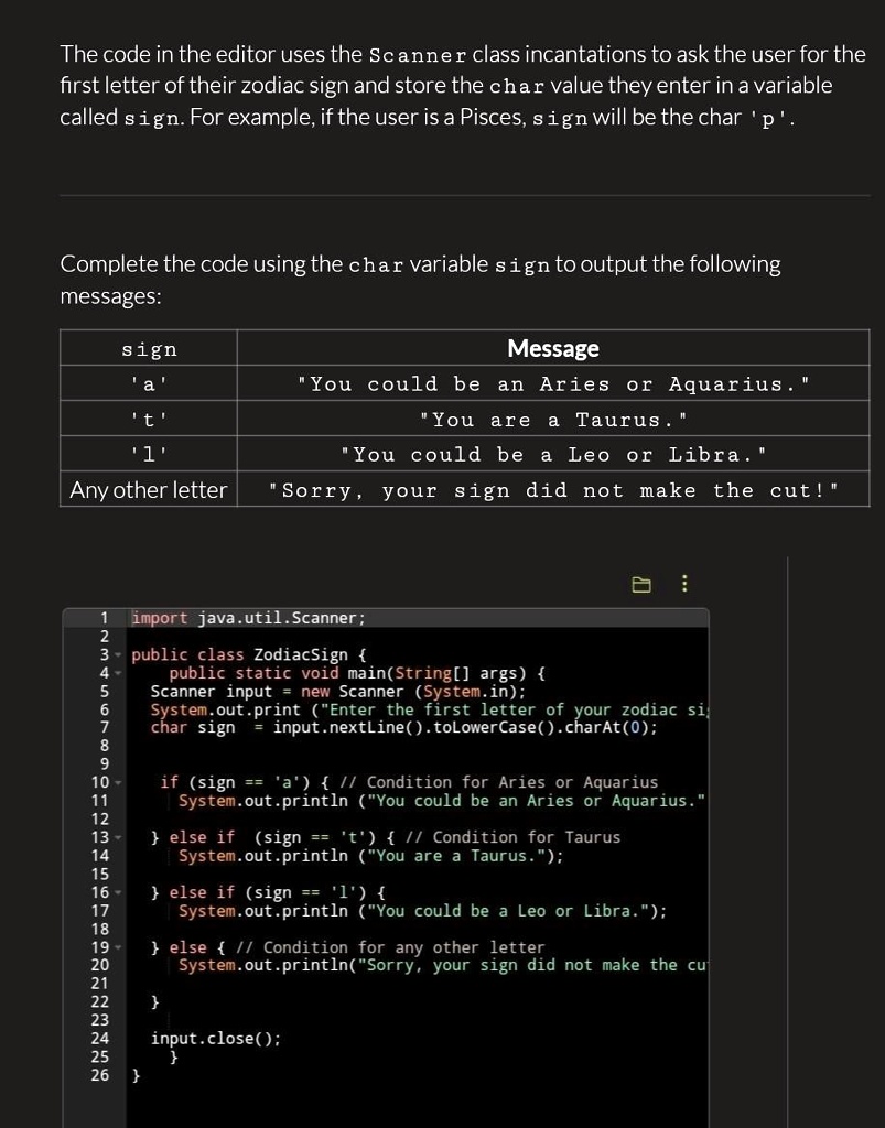 Solved import java.util.Scanner; public class ZodiacSign \{ | Chegg.com