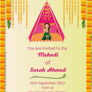 Mehndi Invitation | Digital Henna Night Invite | Sangeet, Jaggo, Haldi ...
