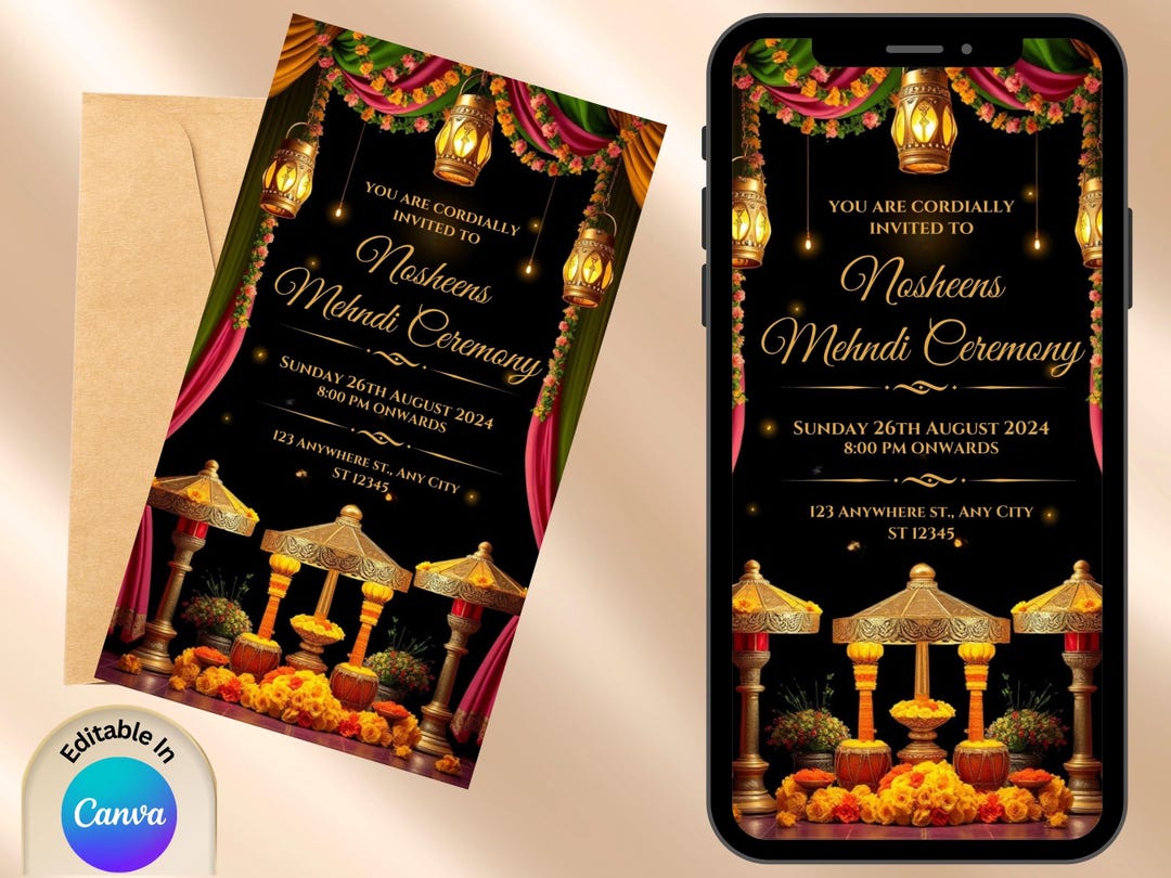 Editable Mehandi Ceremony Invitation | Indian Henna Night | Digital ...
