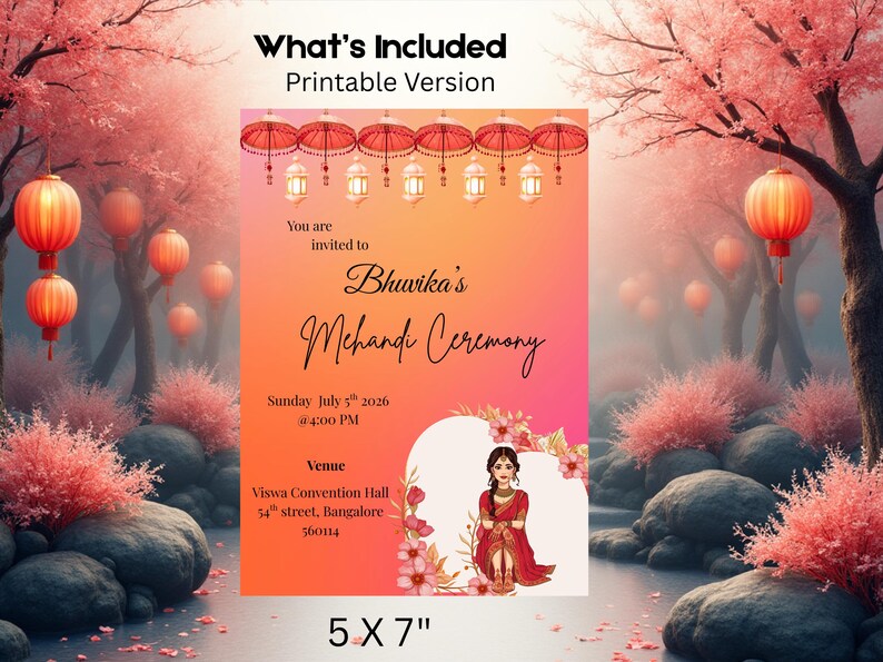 Mehndi Invitation Card, Mehendi Card Design for Ceremony, Editable ...