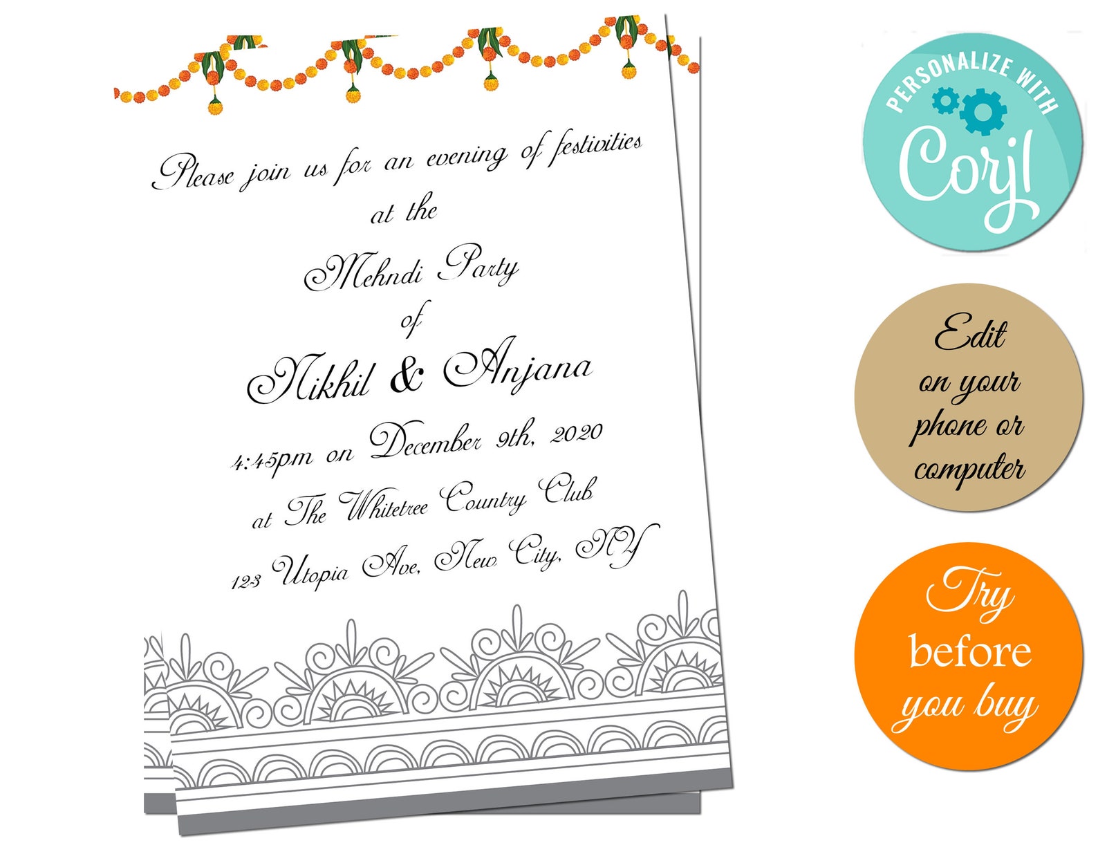 Mehndi Invite Template, Mehndi Invitation Card, Mehendi Invitation ...