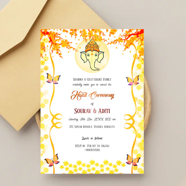 Indian Haldi Ceremony Hindu Couple Ganesha Invitation | Zazzle
