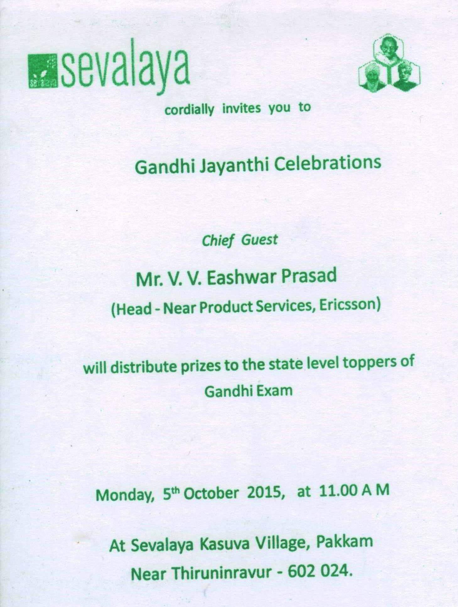 Gandhi Jayanthi Invitation – Sevalaya