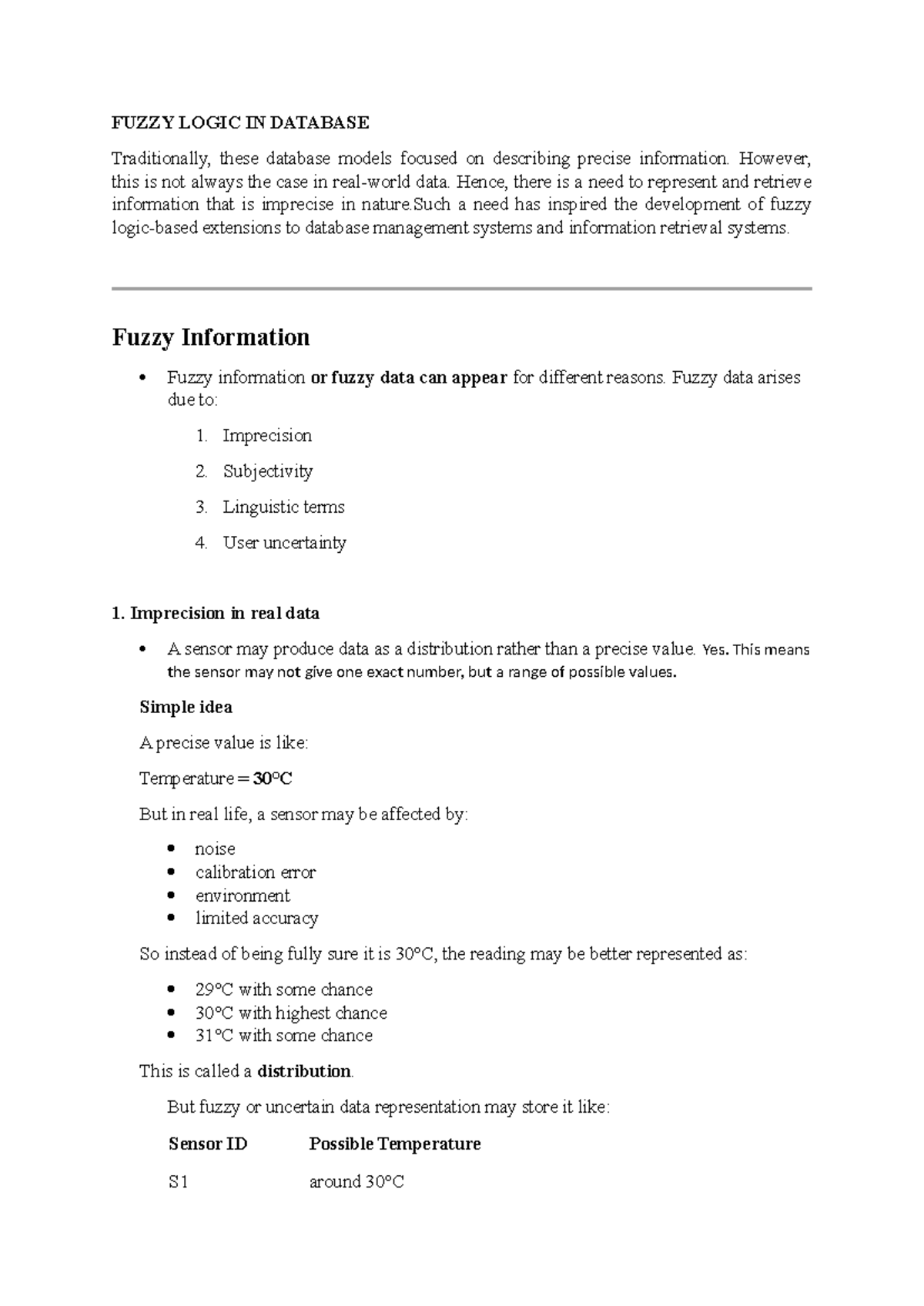 365 12 33 Fuzzy Logic in Database & Info Systems Overview - Studocu