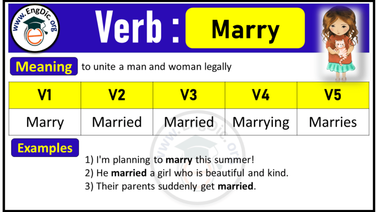 Marry Verb 1 2 3, Past and Past Participle Form Tense of Marry V1 V2 V3 ...