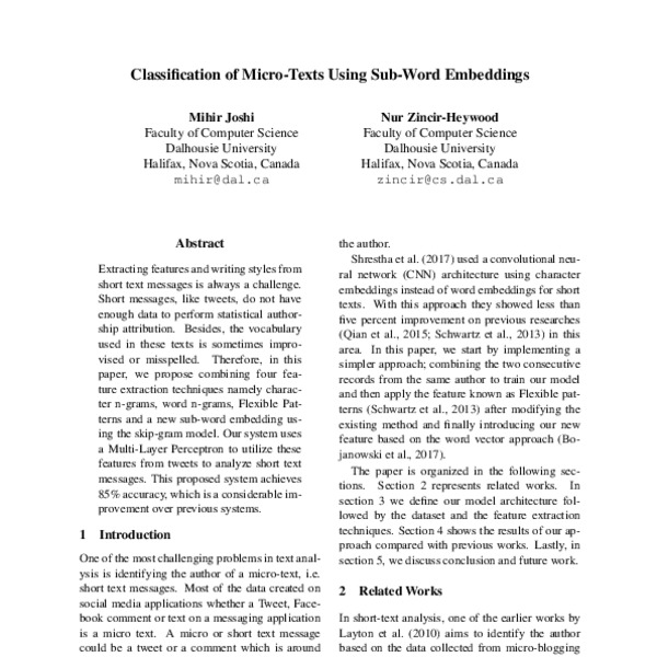 Classification of Micro-Texts Using Sub-Word Embeddings - ACL Anthology