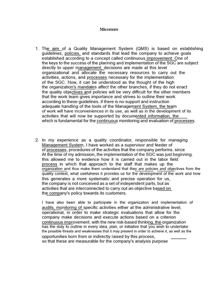 Microtexts Planning of A QMS | PDF | Quality Management System | Policy
