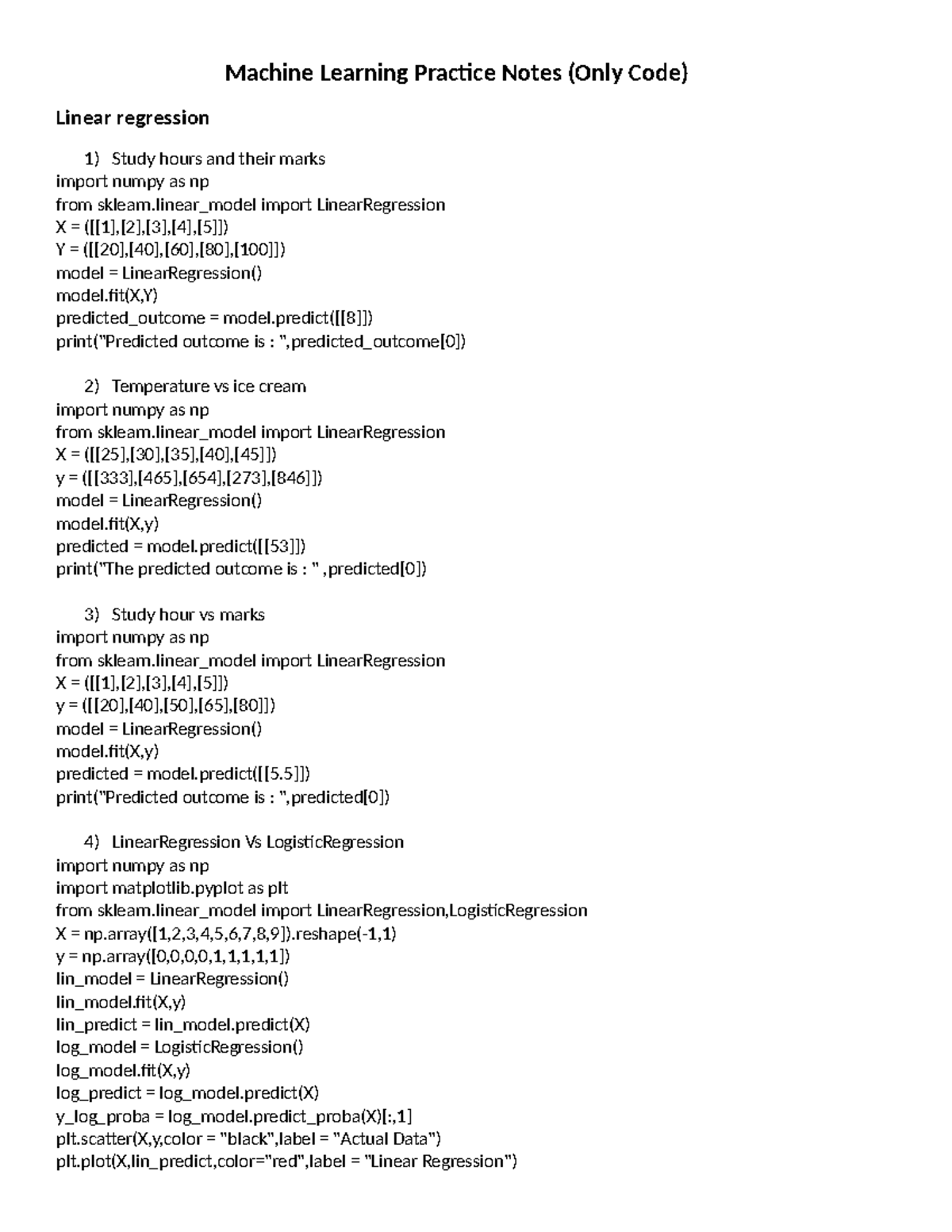 Machine Learning Practice Notes (ML 101) - Code Examples - Studocu