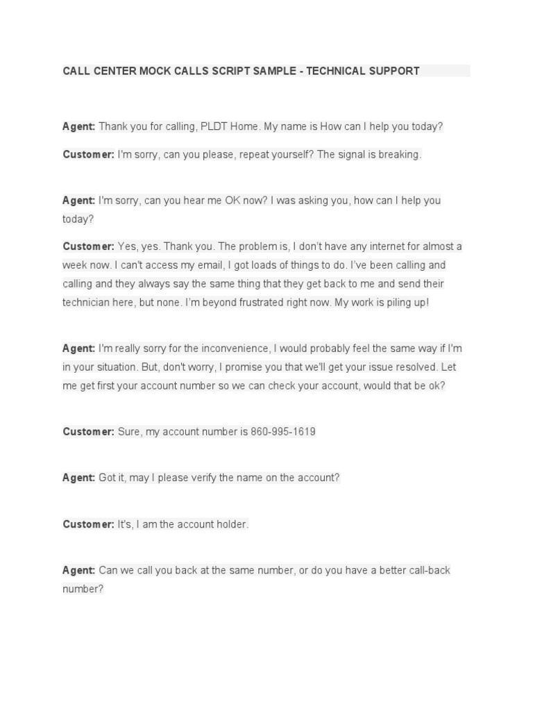 Call center mock calls script sample technical support - 3 CALL CENTER ...