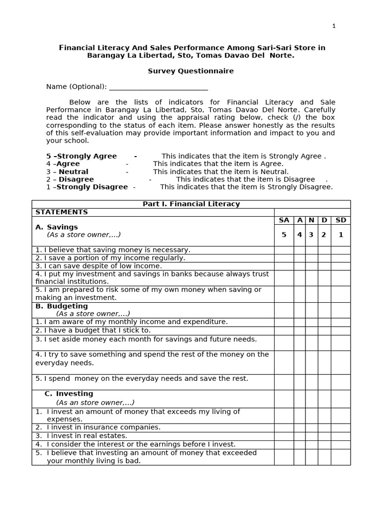 G2 - Modified Survey Questionnaire | PDF | Credit | Finance & Money ...