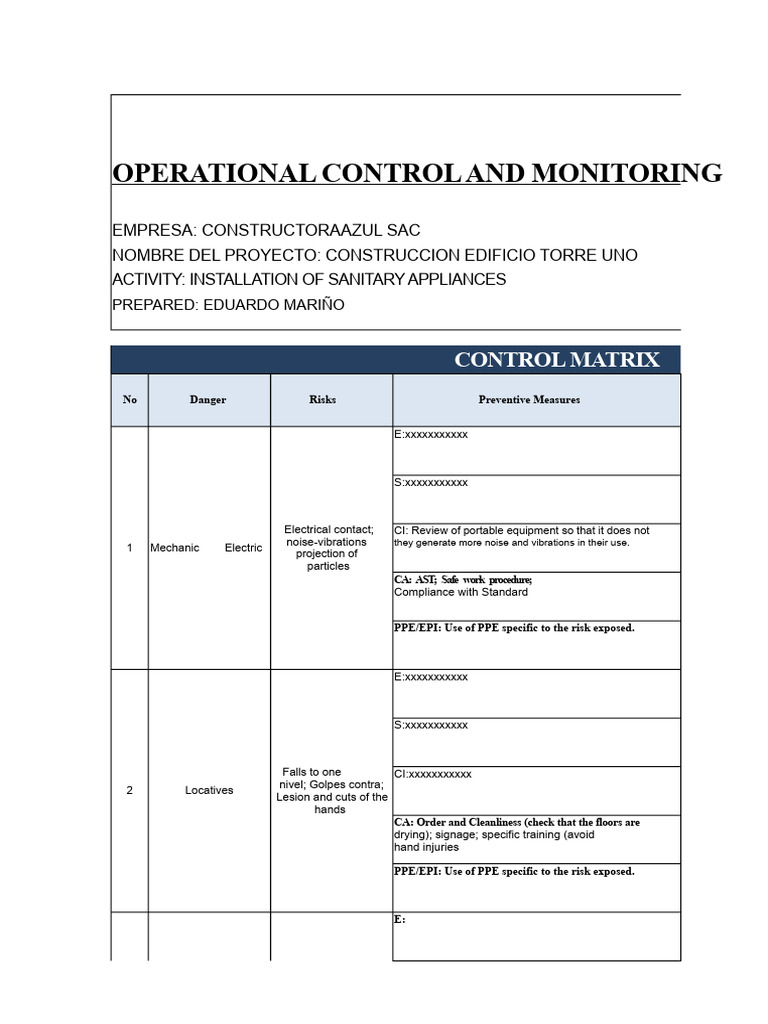 Model - Operational Control and Monitoring Matrix | PDF | Personal ...