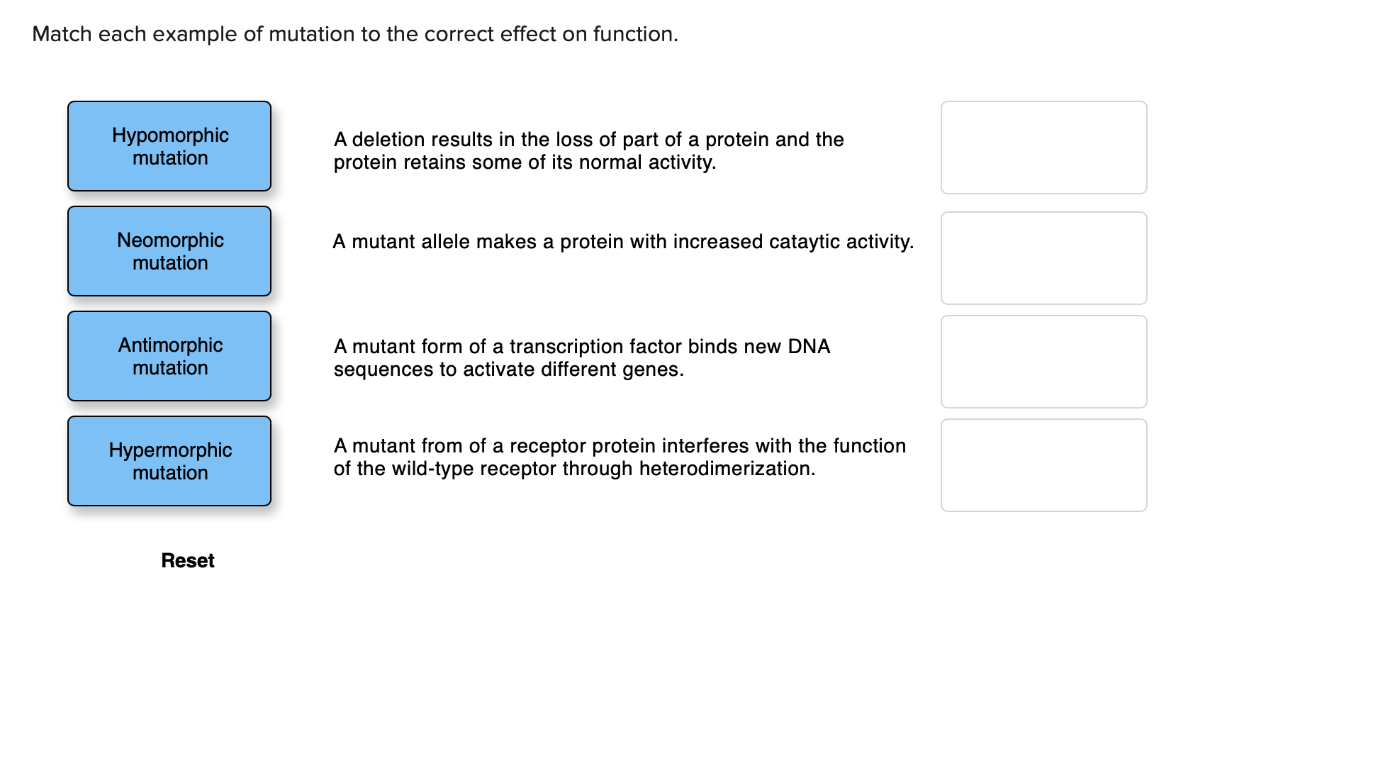 Solved Match each example of mutation to the correct effect | Chegg.com