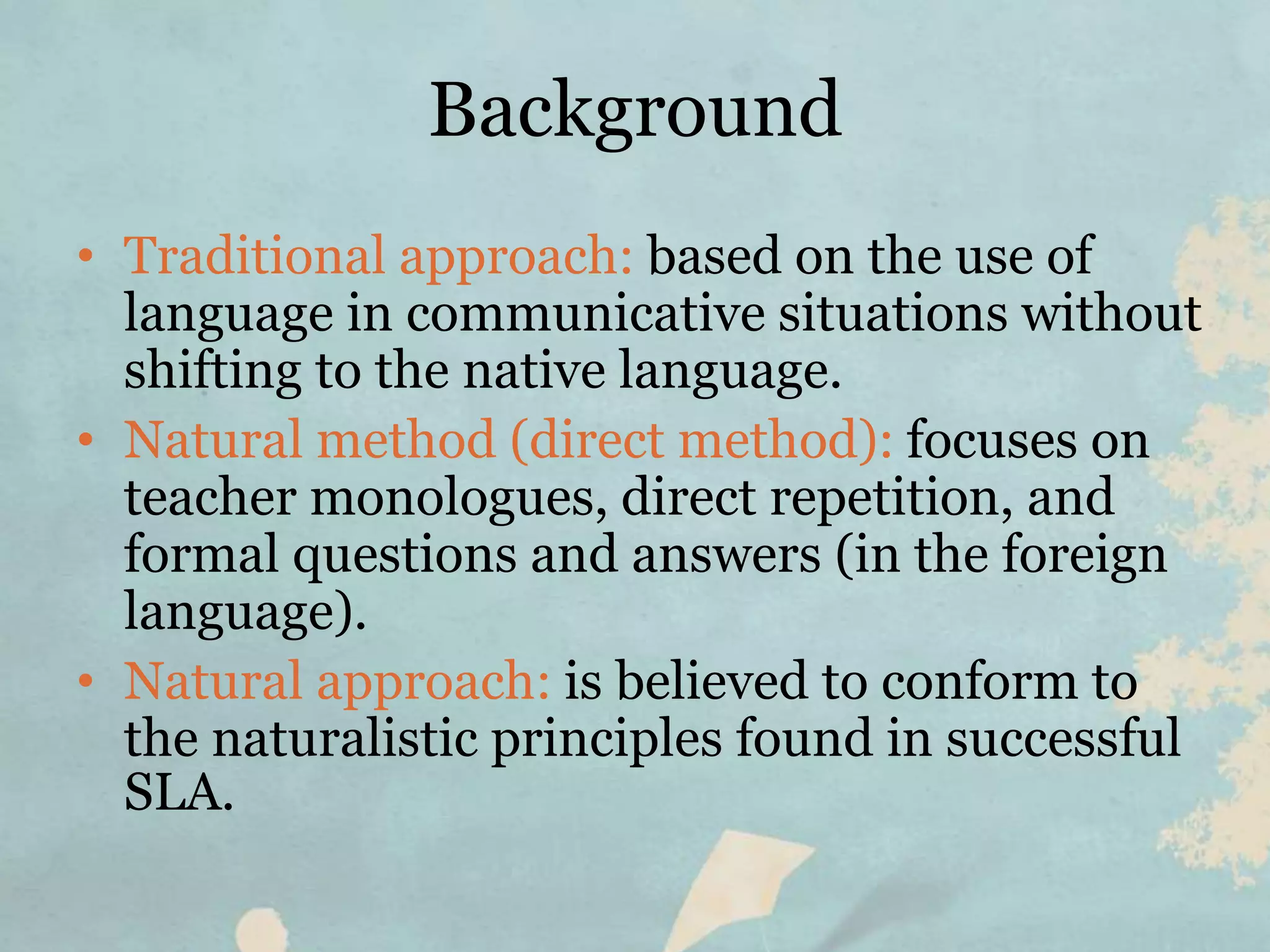 PPT - The Natural Approach Approaches & Methods in Language Teaching ...