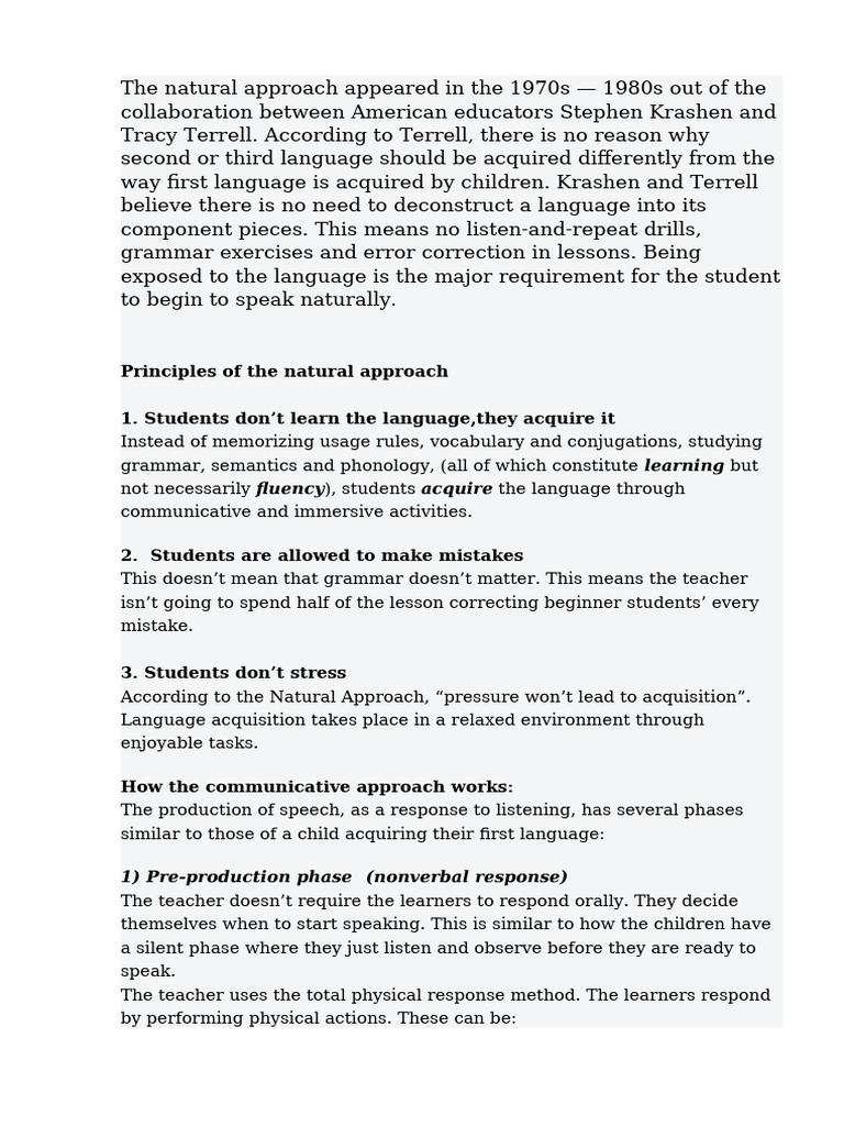 The Natural Approach.ppt | Language Acquisition | Psycholinguistics