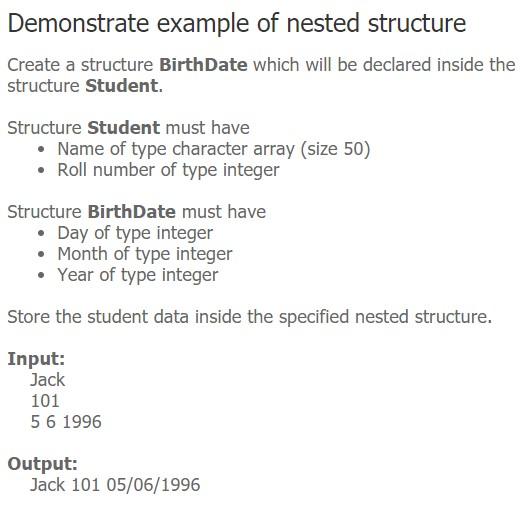 Solved Demonstrate example of nested structure Create a | Chegg.com