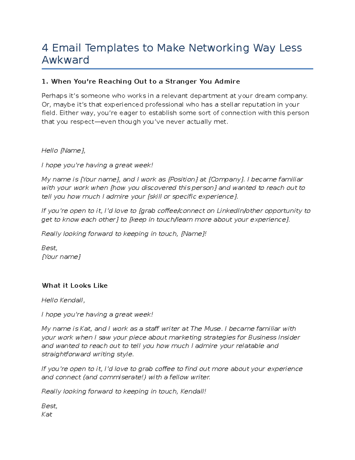 4 Email Templates to Make Networking Way Less Awkward - Or, maybe it’s ...