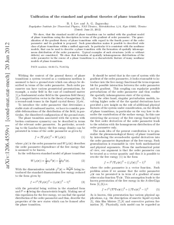(PDF) Unification of the standard and gradient theories of phase transition