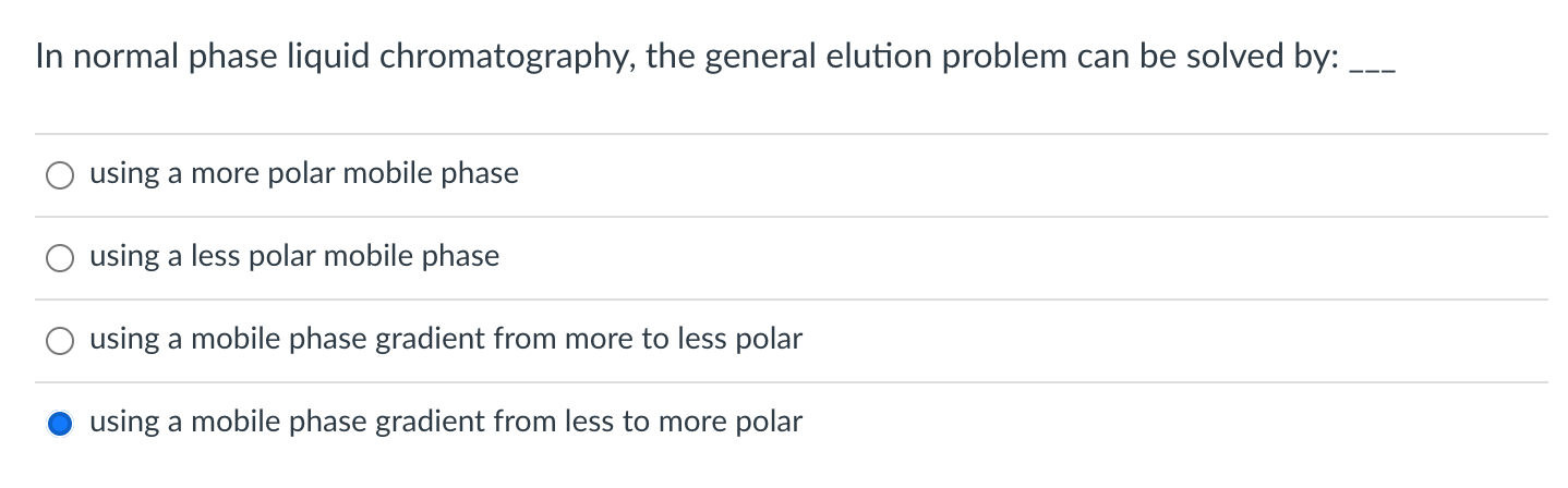 Solved In normal phase liquid chromatography, the general | Chegg.com