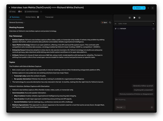Fathom adds a bot-less meeting mode in a bid to take on Granola