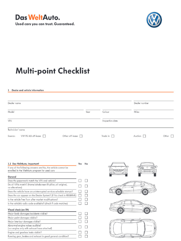 Multi-point Inspection Checklist Vehicle Inspection Sheet Visual ...