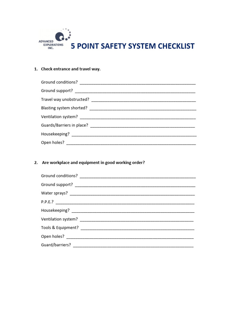 5 Point Safety System Checklist | PDF