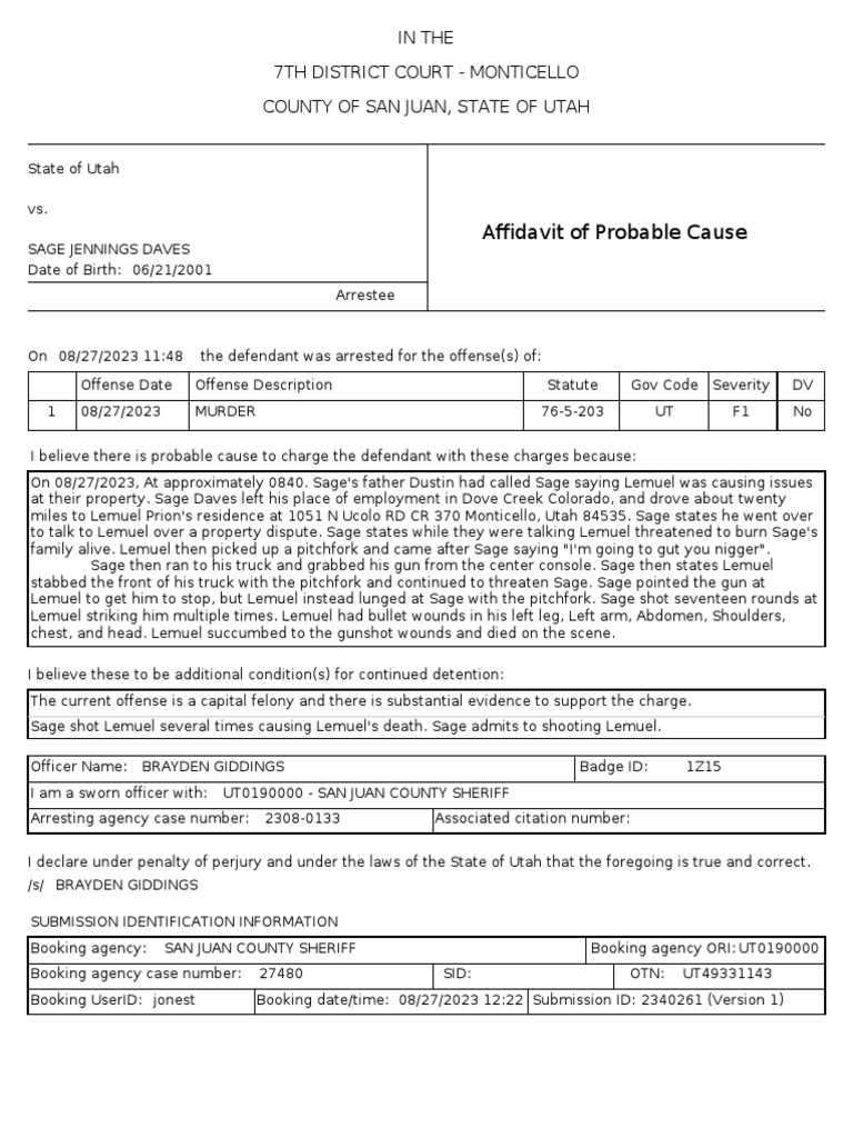 2023 12 20 - Probable Cause Affidavit - Alison Davis - in PDF | PDF ...