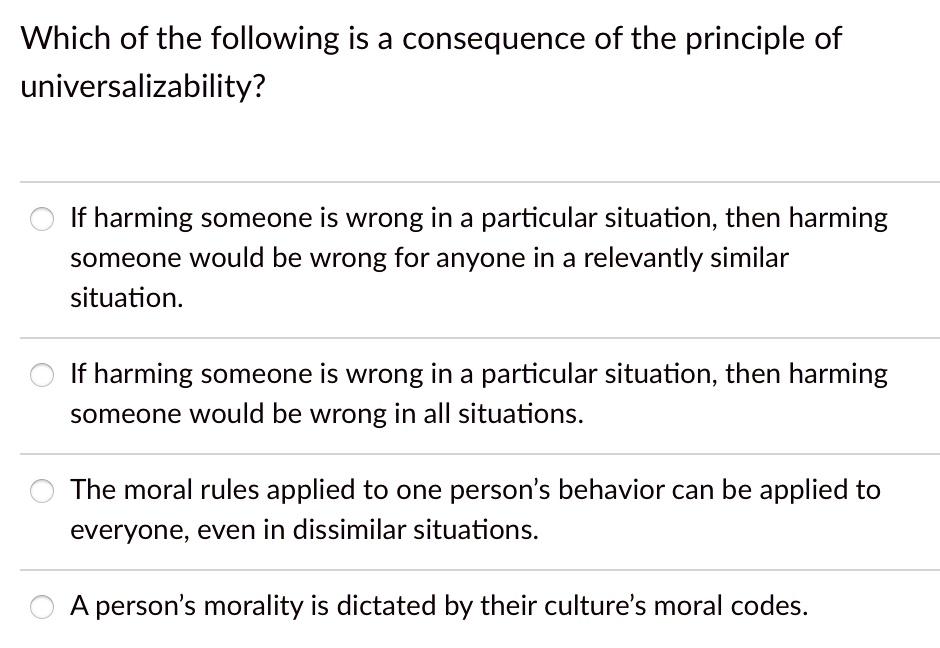 Solved Universalizability, a trait of moral principles, | Chegg.com
