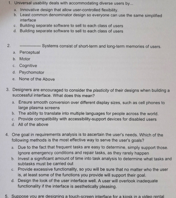 Solved 1. Universal usability deals with accommodating | Chegg.com