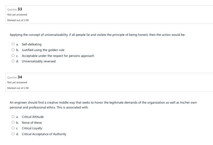 Solved 15. The universalizability principle refers us to | Chegg.com
