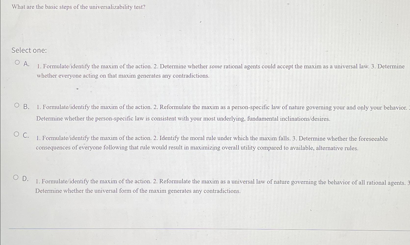 What are the basic steps of the universalizability | Chegg.com