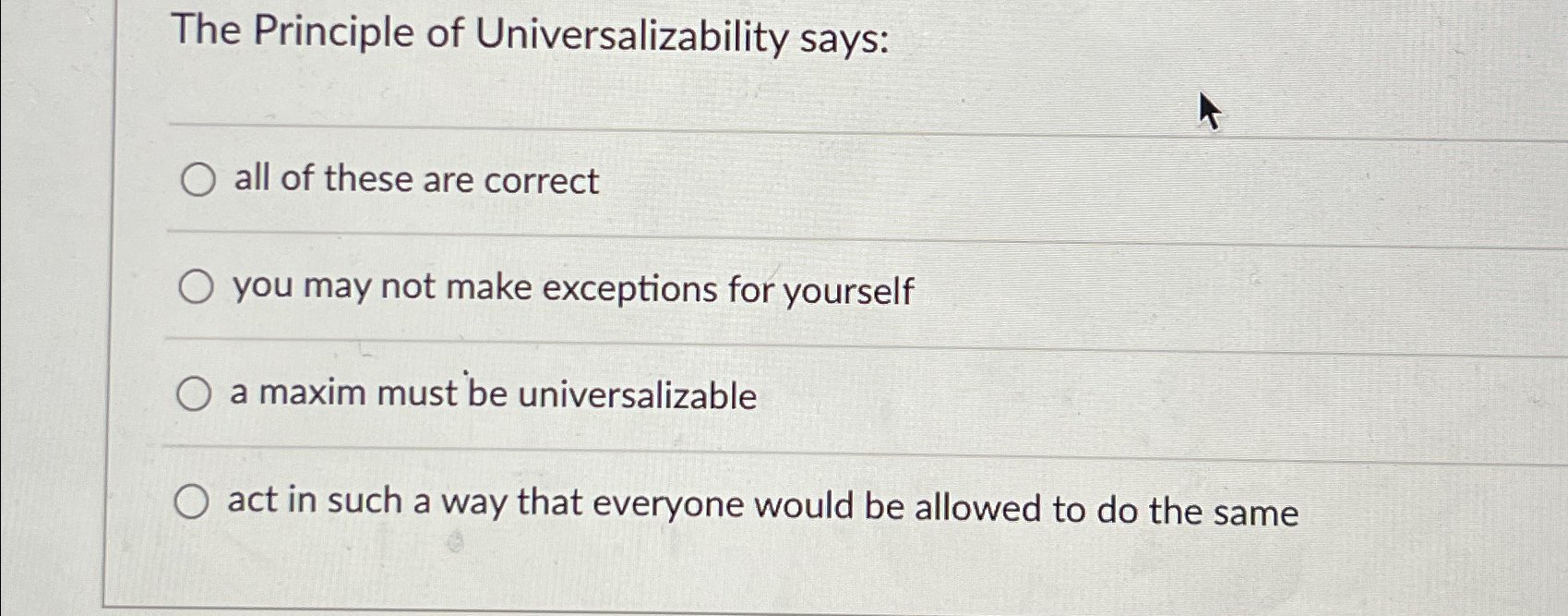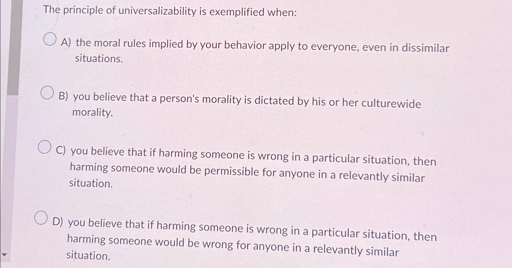 Solved The principle of universalizability is exemplified | Chegg.com