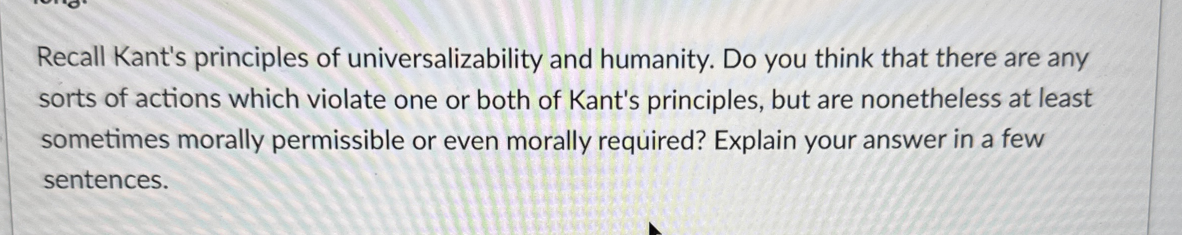 Solved Kant's "Principle of Universalizability" holds | Chegg.com
