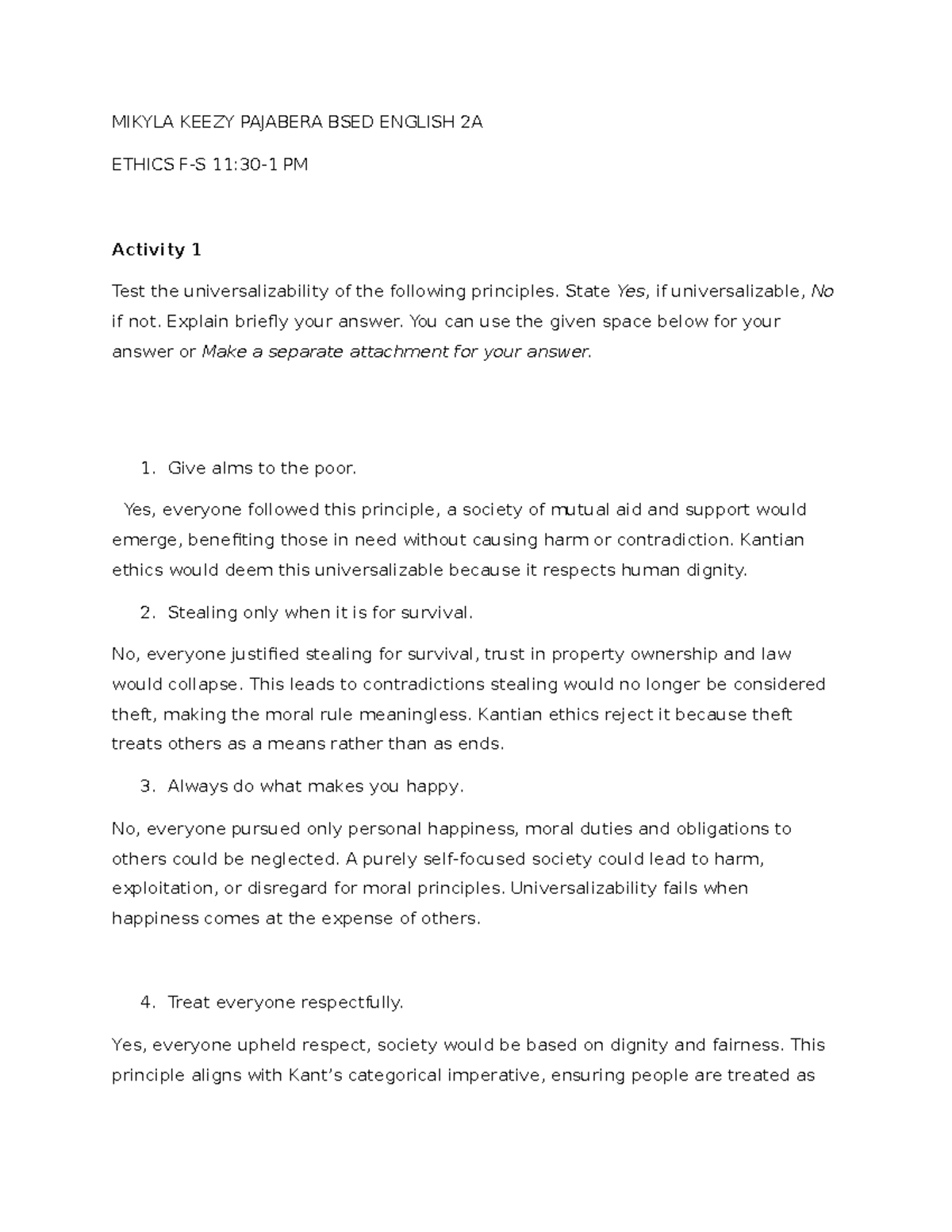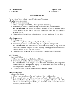 Deontology Universalizability test lorelyn.docx - Name: Lorelyn S. Pusa ...